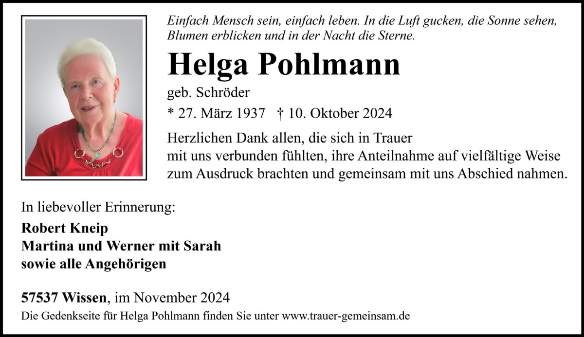 Sie hat viele Spuren der Fürsorge bei uns hinterlassen. Das werden wir nie vergessen!