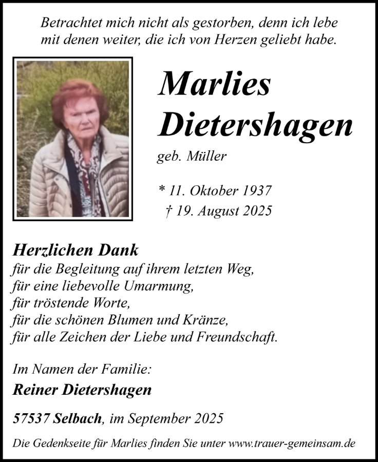 Marlies Dietershagen geb. Müller