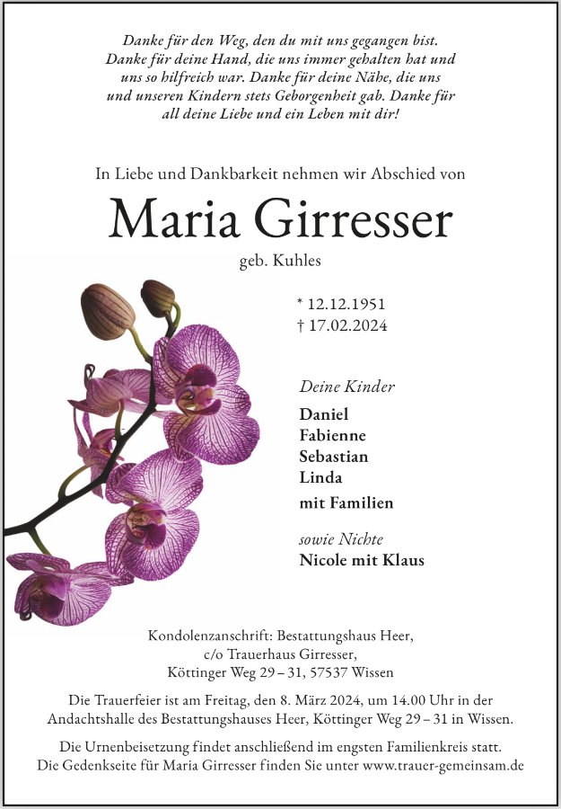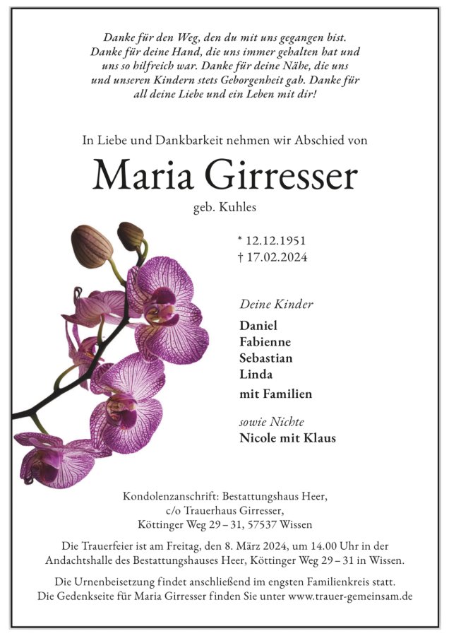 bereitet hat wenn wir sie getroffen hatten. Viel Kraft der Familie und liebe Maria "Ruhe in Frieden".